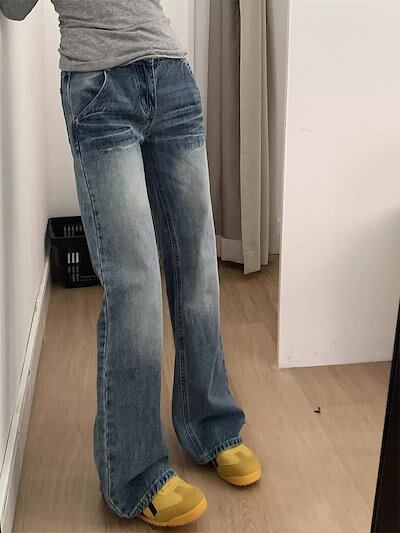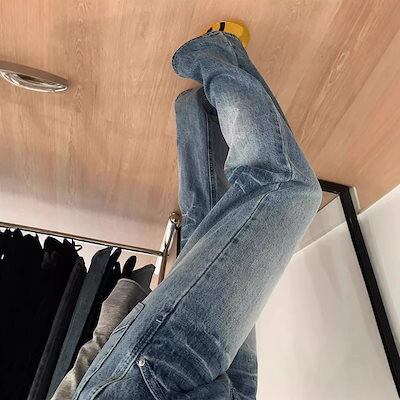 【以内出荷】アメリカン レトロ ストレート デニム レディース 春秋 新作 ハイウエスト ビッグサイズ ゆったり 痩せ見え ルーズ ミクロ フレアパンツ