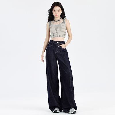 デニムかっこいいスラックスパンツ25 デニムパンツ おしゃれ パンツ レディース 垂れ感 ワイドパンツ アメリカンレトロ ハイウエストでゆったり 見えやせ カジュアルパンツ