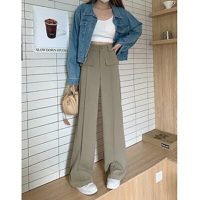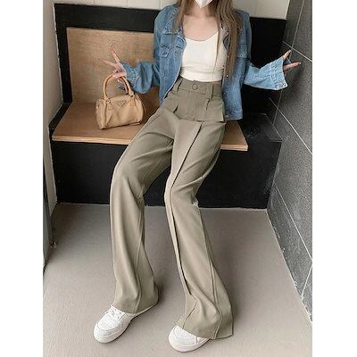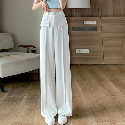 ワイドパンツ センタープレススラックスパンツ ハイウエストパンツ ハイウエスト ボトムス レディース パンツ ズボン スラックス センタープレス ストレート ロング ゆったり