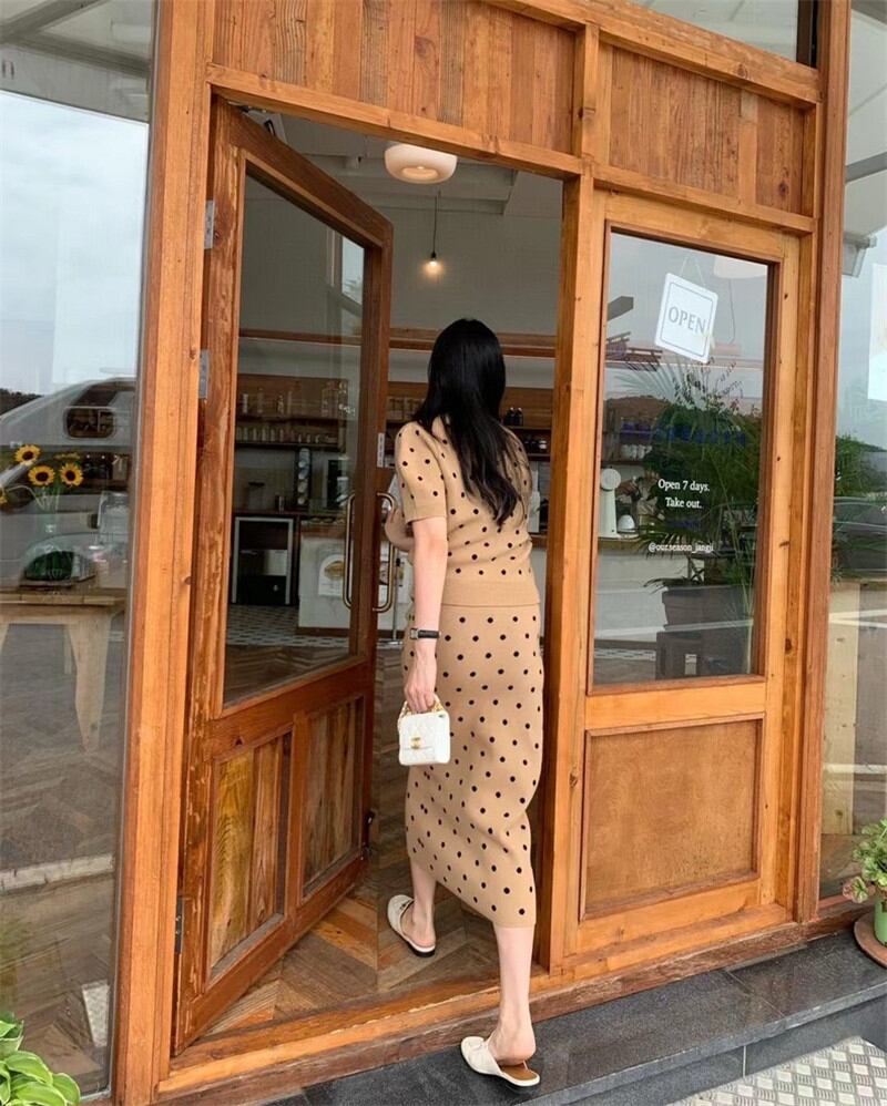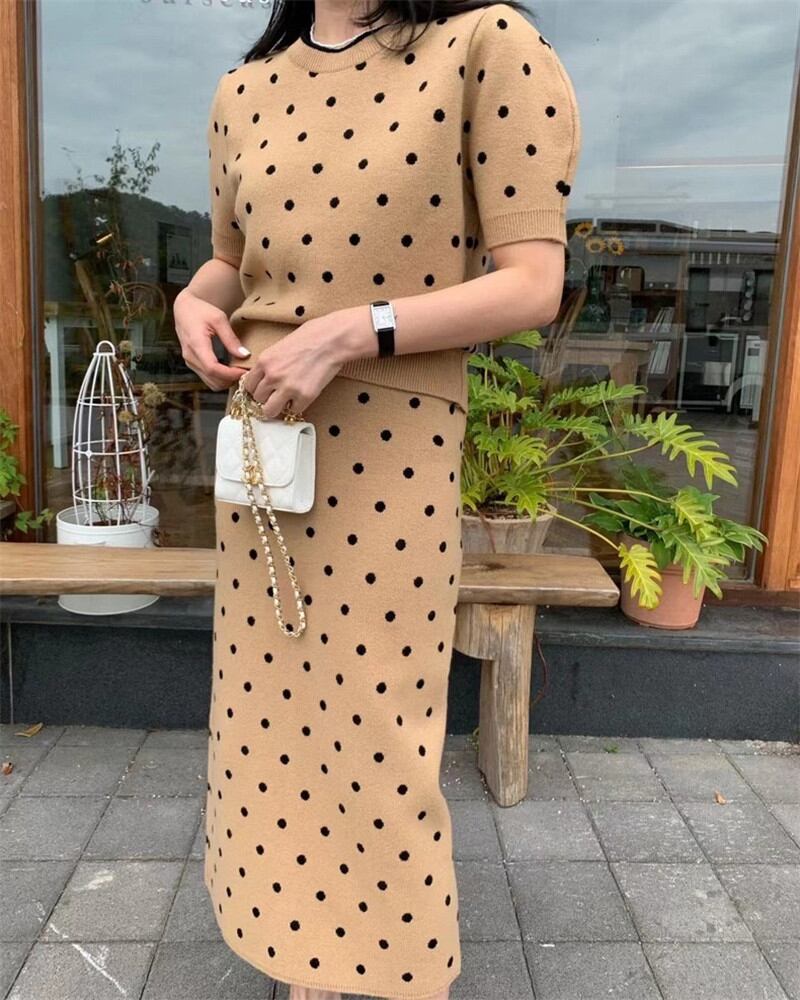 2025年INS 春夏新作 おしゃれ ニット シャツ+スカート セットアップ 高級感 優雅