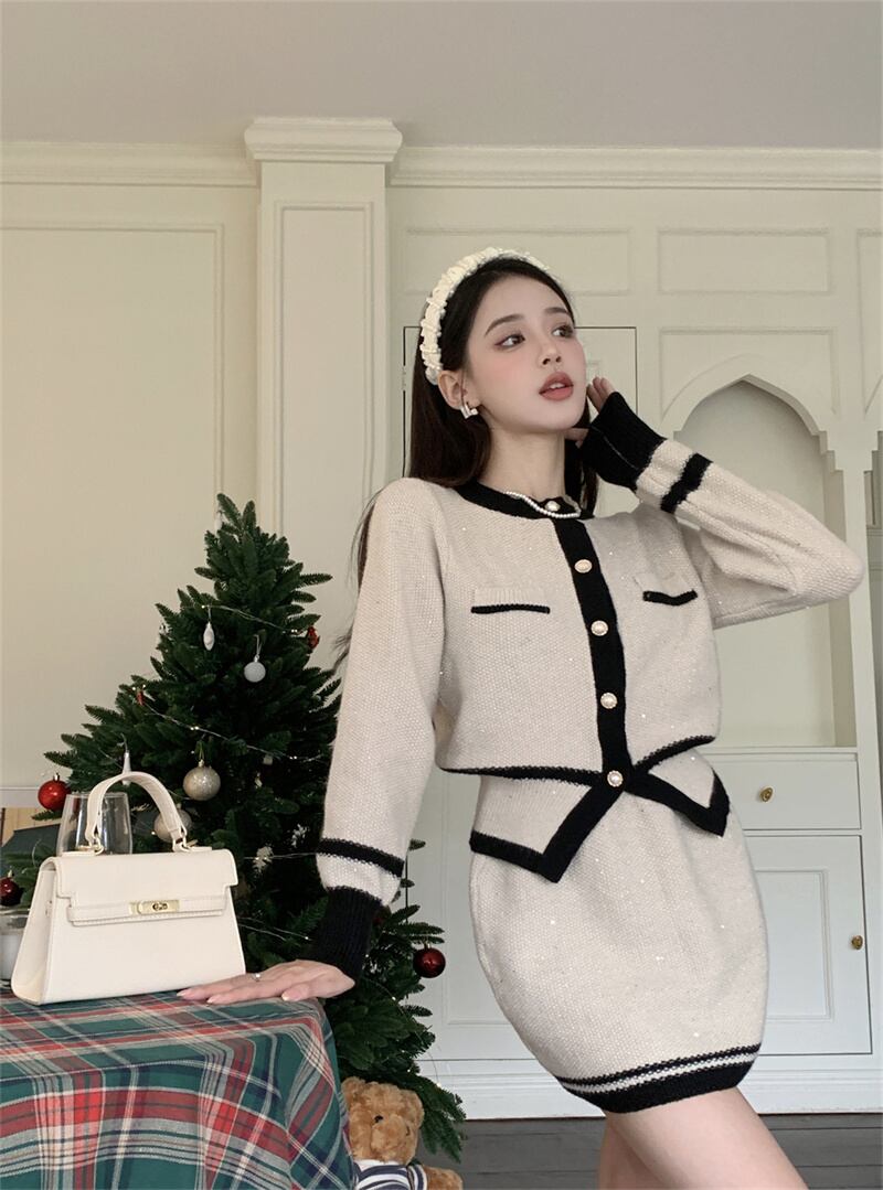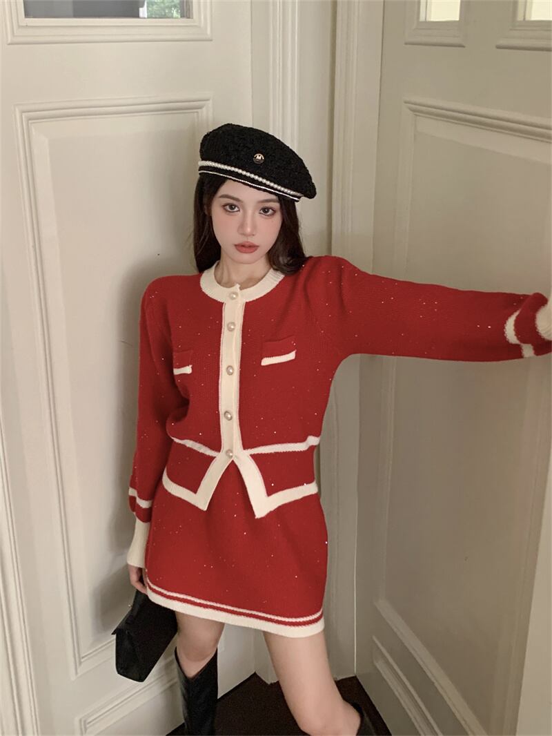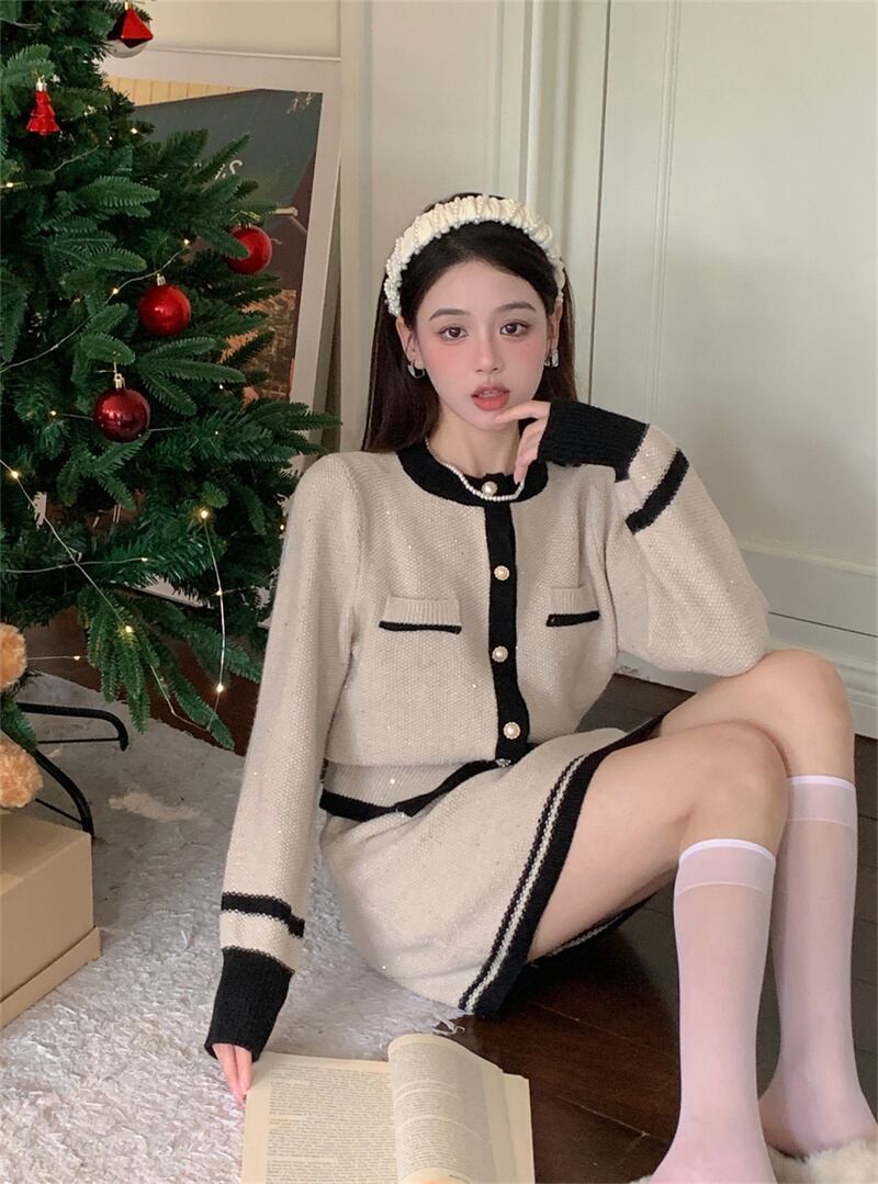 2022冬INS★ファッション レトロ おしゃれ エレガント ニット/スカート カジュアルセットアップ