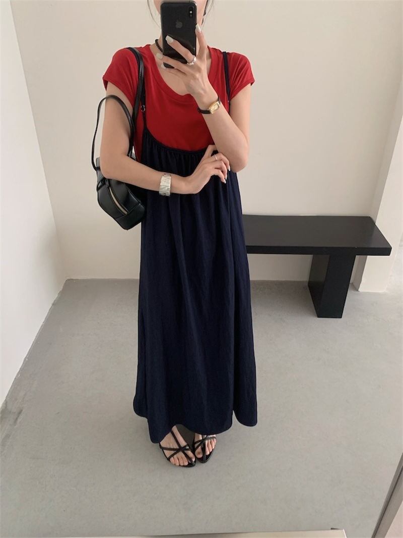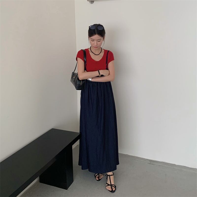 2025年INS 春夏新作 おしゃれ カジュアル系 tシャツ+デニムワンピース 2点セットアップ