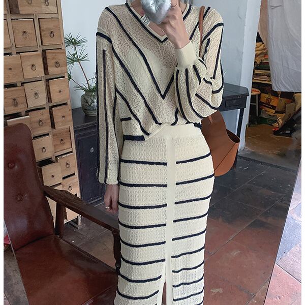 【秋新作】韓国風レディース服 ニット おしゃれ 長袖 セットアップ