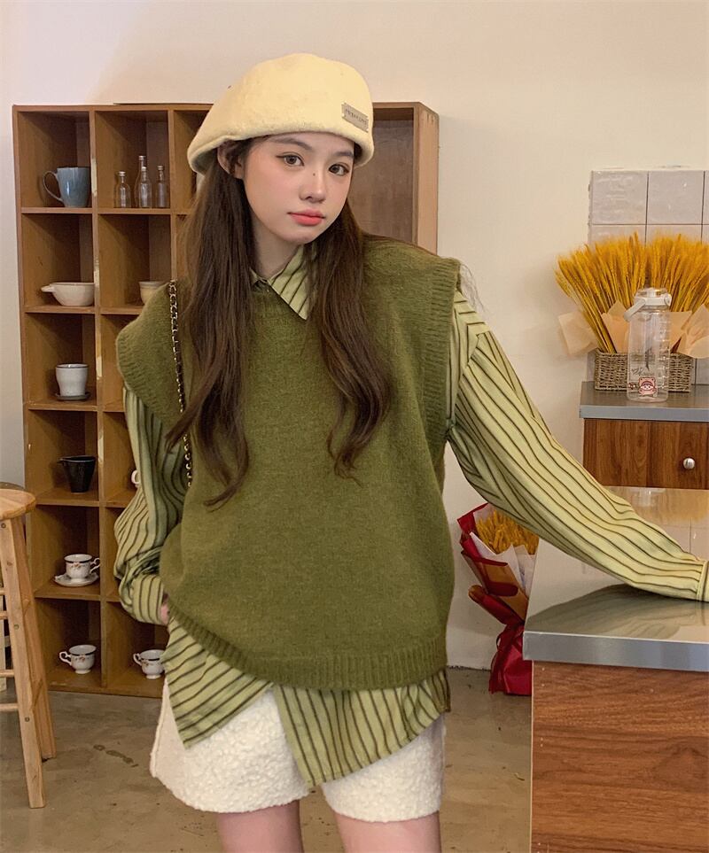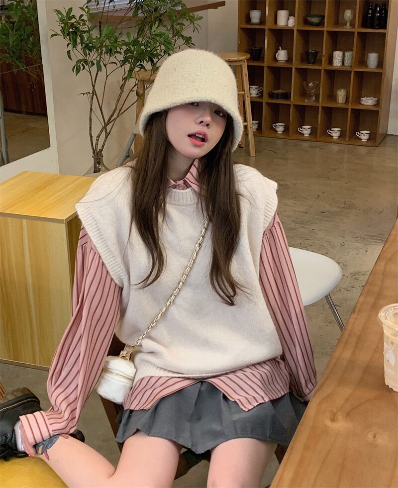 秋冬INS 新作 気質 カジュアル 韓国ファッション エレガント ベスト/シャツ セットアップ