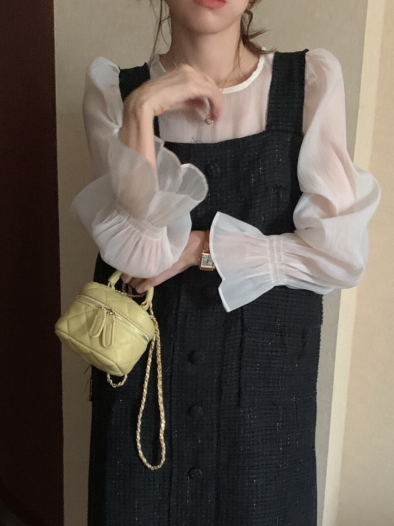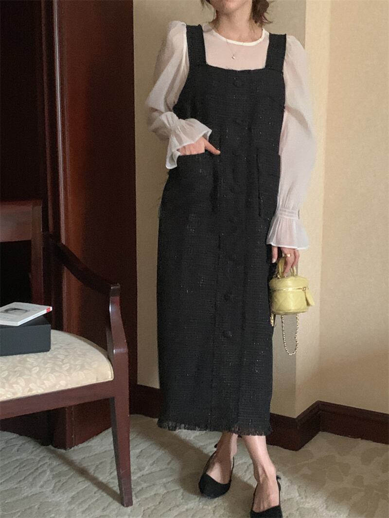 秋INS 新作 品さたっぷり 長袖 シャツ+ タッセル キャミソールワンピース 2点セットアップ