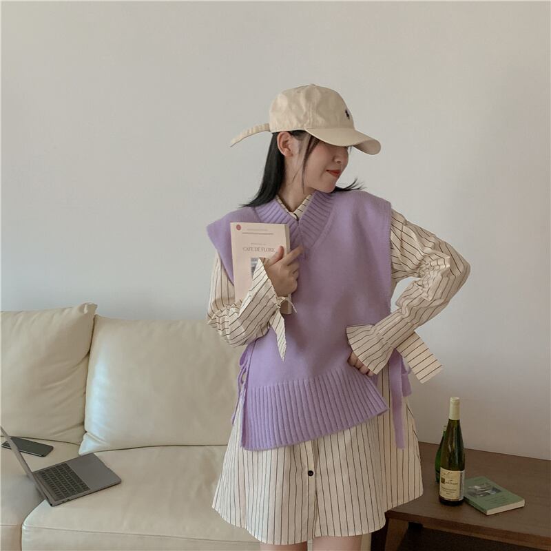 秋冬INS 新作 気質 カジュアル 韓国ファッション エレガント ベスト+シャツ 2点セットアップ