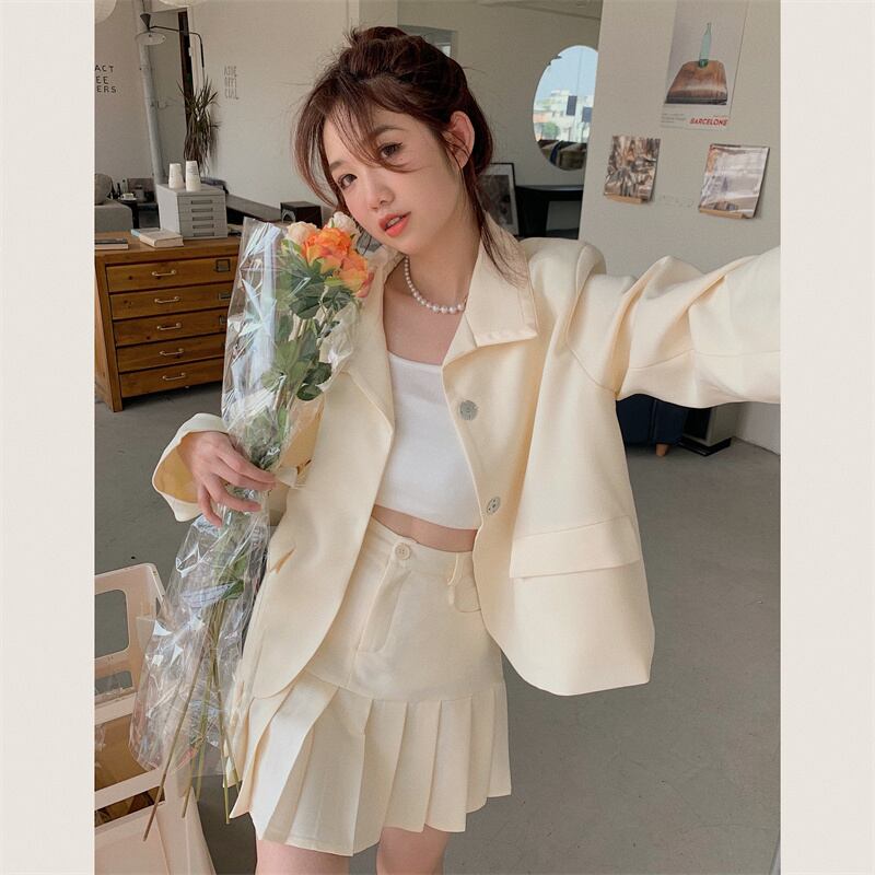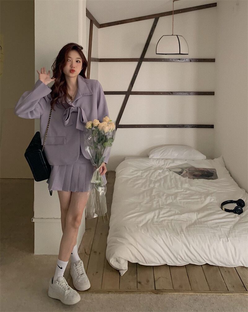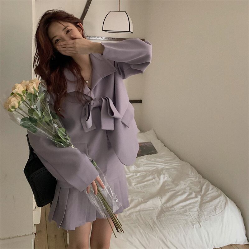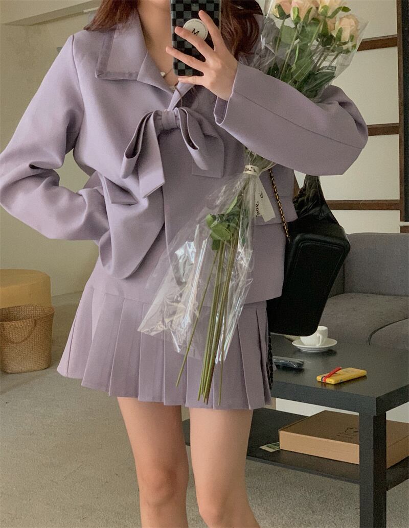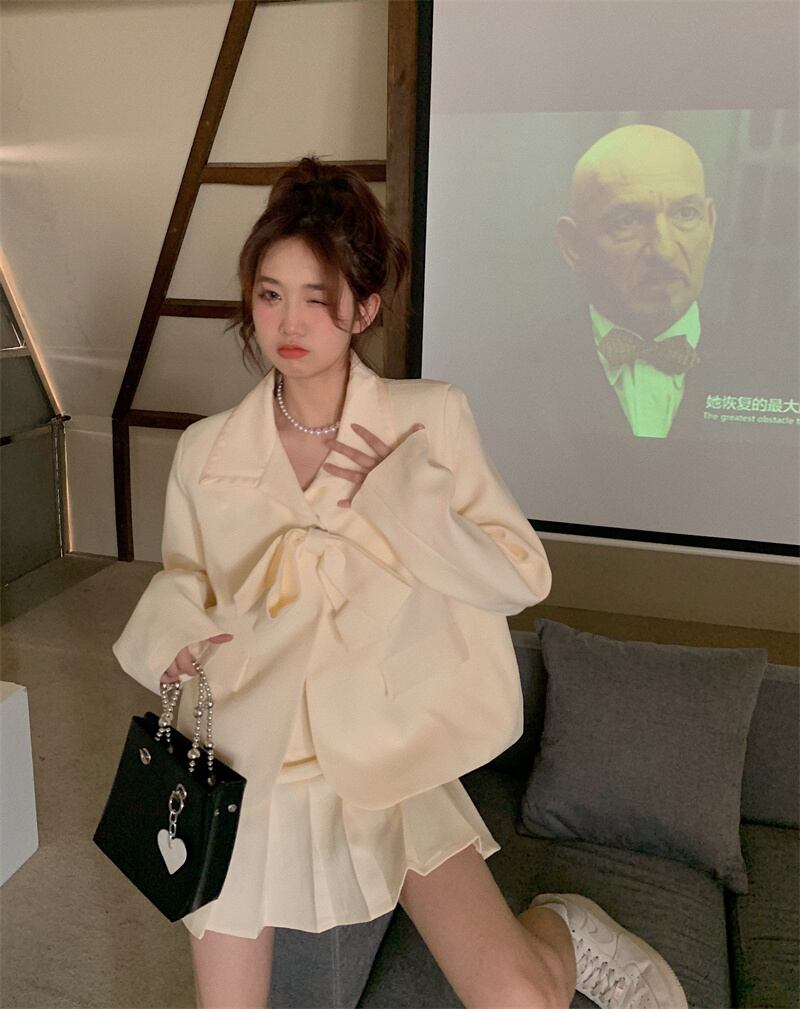 秋INS 新作 レトロ 長袖 折り襟 リボンジャケット ハイウエスト OL/フォーマルセットアップ