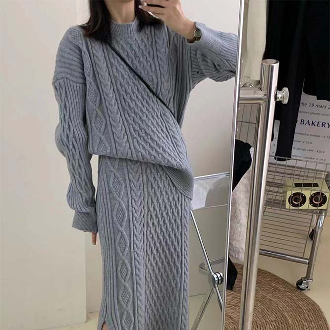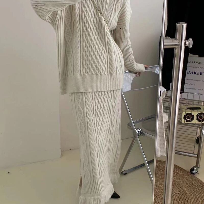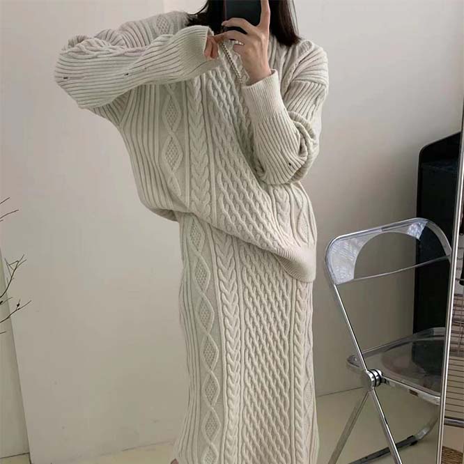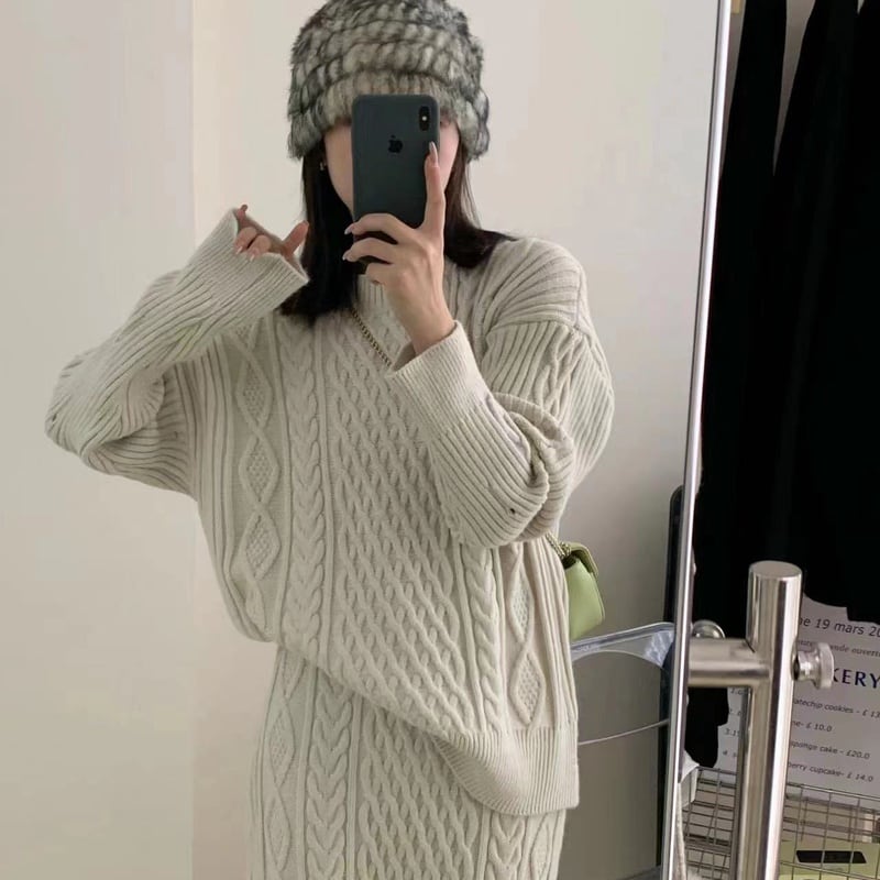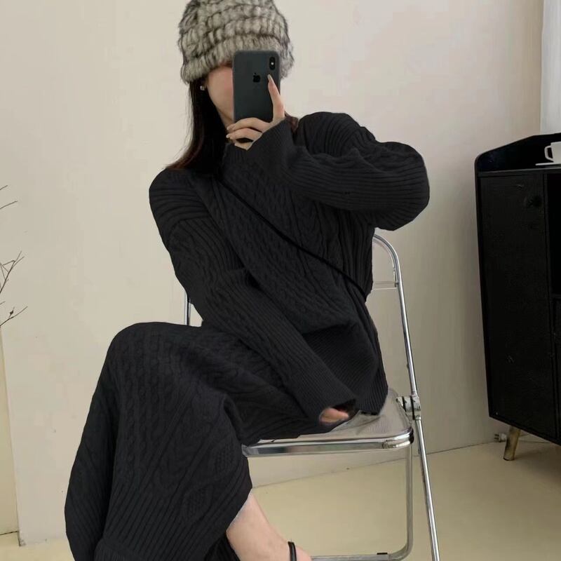 【秋新作】韓国風レディース服 おしゃれ カジュアル 長袖 ニット セットアップ
