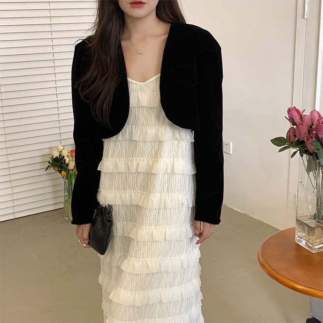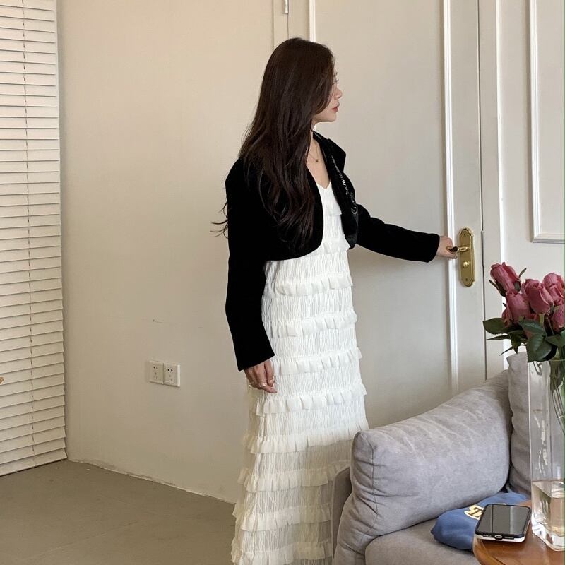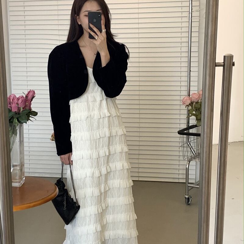 【秋新作】韓国風レディース服 おしゃれ キャミソールワンピース&コート セットアップ