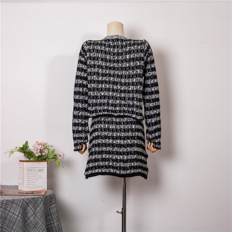 INS 秋新作 気質 ニット生地 ラウンドネック カーディガン+ハイウエストスカート chic セットアップ