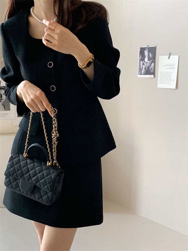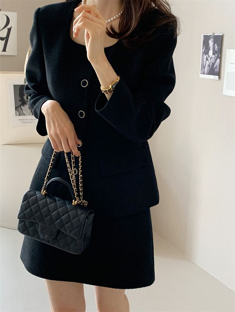2023年秋冬INS 新作 カジュアル レトロ ゆったり 折り襟 ショートスカート OL/フォーマルセットアップ