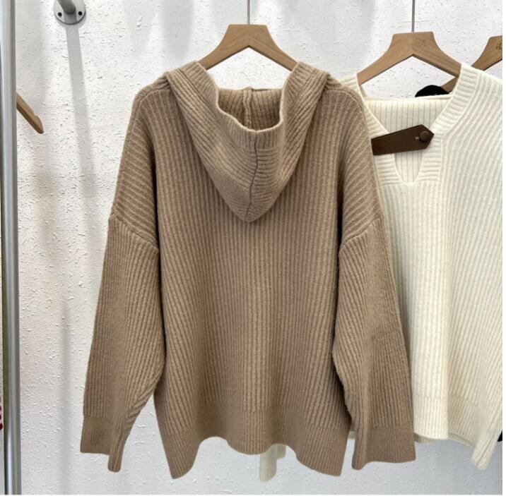 秋新しい 韓国風 長袖ニットトップ, 気質ファッションフード付きセーター★2022★F