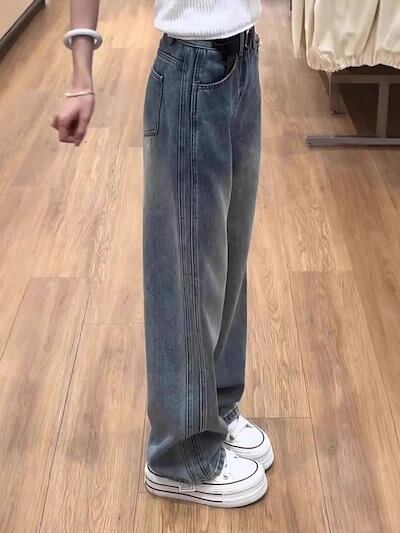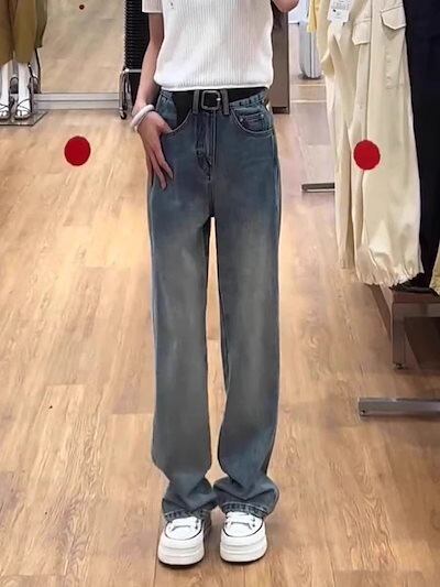 2025 レトロ ハイウエスト レディース 春秋 新作 新品 大人気 プラスサイズ ゆったり スリミング スリムストレートパンツ