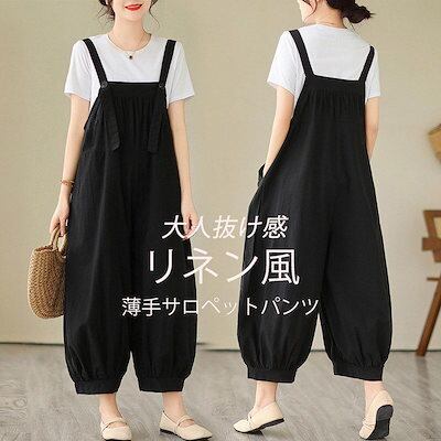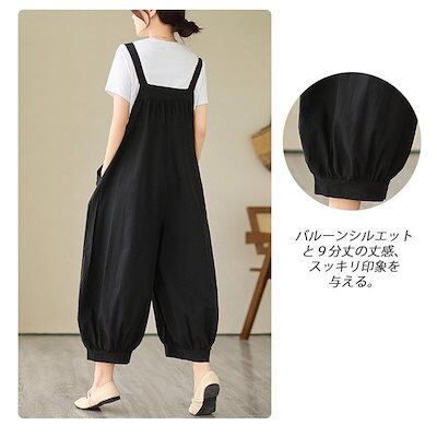 サロペットパンツ レディース リネン風 バルーン ワイド オーバーオール つなぎ 9分丈 薄手 春 夏 ゆったり 大きいサイズ カジュアル 一枚でおしゃれ