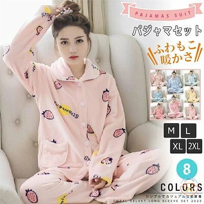 パジャマ レディース ルームウエア 可愛いパジャマ 開襟 フランネル フラノ 裏起毛 秋冬 ロングパンツ 長袖 パジャマレディース 暖かい 可愛い 部屋着 寝巻きかわいい ゆったり