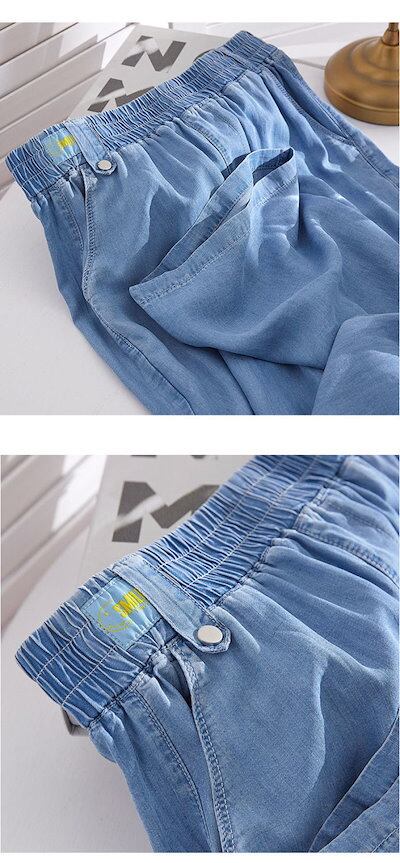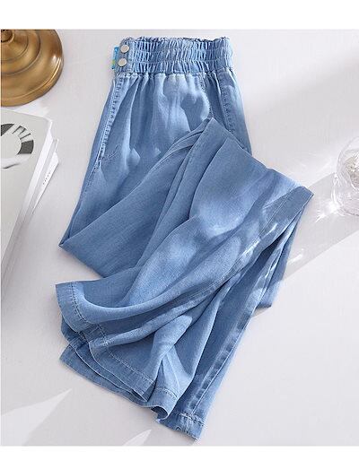 2025 年 春夏 薄手 プラスサイズ レーヨン デニム パンツ レディース ゆったり 目玉商品〜超人気 シルエット スリム 使いやすい ワイドレッグ パンツ インス風