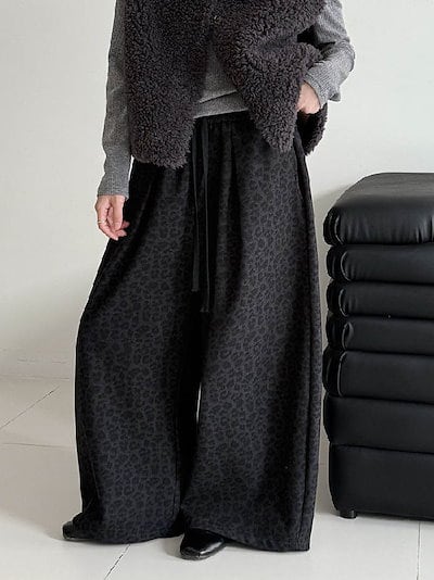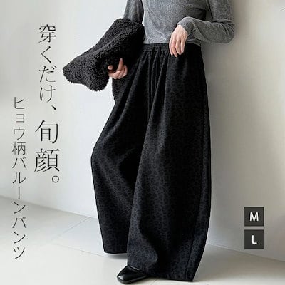 ワイドパンツ レディース ヒョウ柄 裏微起毛 サルエルパンツ 秋 冬 春 ガウチョパンツ 体型カバー ロングパンツ バルーンパンツ 大きいサイズ ボトムズ ヒョウ柄 冬 秋 着痩せ 美脚 ゆったり 着