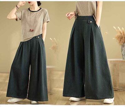 ワイドパンツ デニムパンツ レディース 春夏秋 パンツ イージーワイドパンツ ハイウェスト ウエストゴム ボトムス ワイドデニムパンツ リラックス ジーンズ ロングパンツ 大きいサイズ ゆったり 体