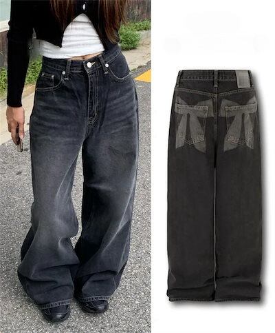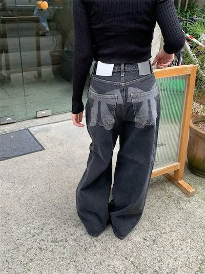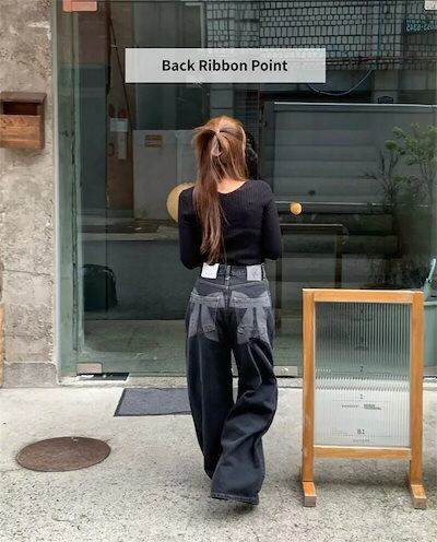 デニムパンツ ワイドパンツ レディース ロングパンツ 春 秋 ハイウエスト バックリボン ポイント デザイン感たっぷり 大きいサイズ ゆったり 体型カバー 美脚 着痩せ ボトムス 長ズボン シンプル