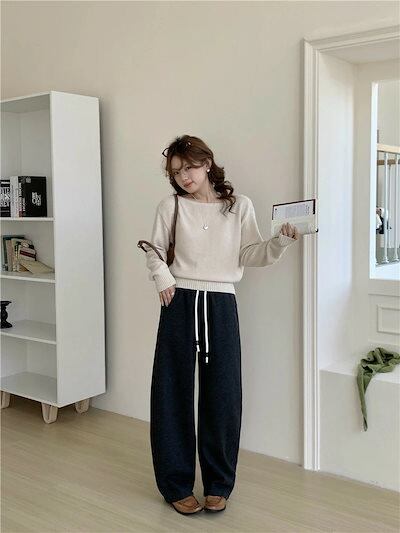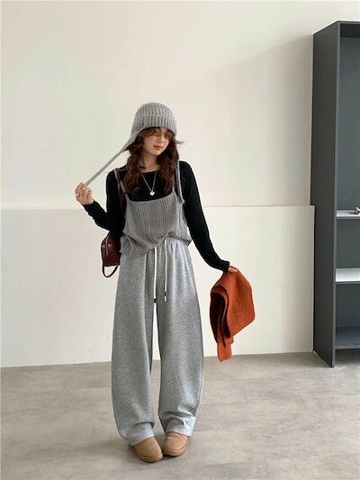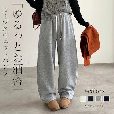 スウェット カーブ パンツ レディース ボトム ワイドパンツ カーブパンツ スウェットパンツ ロングパンツ ズボン ウエストゴム 体型カバー 太ももカバー ゆったり 楽ちん ポケット コットン ウール
