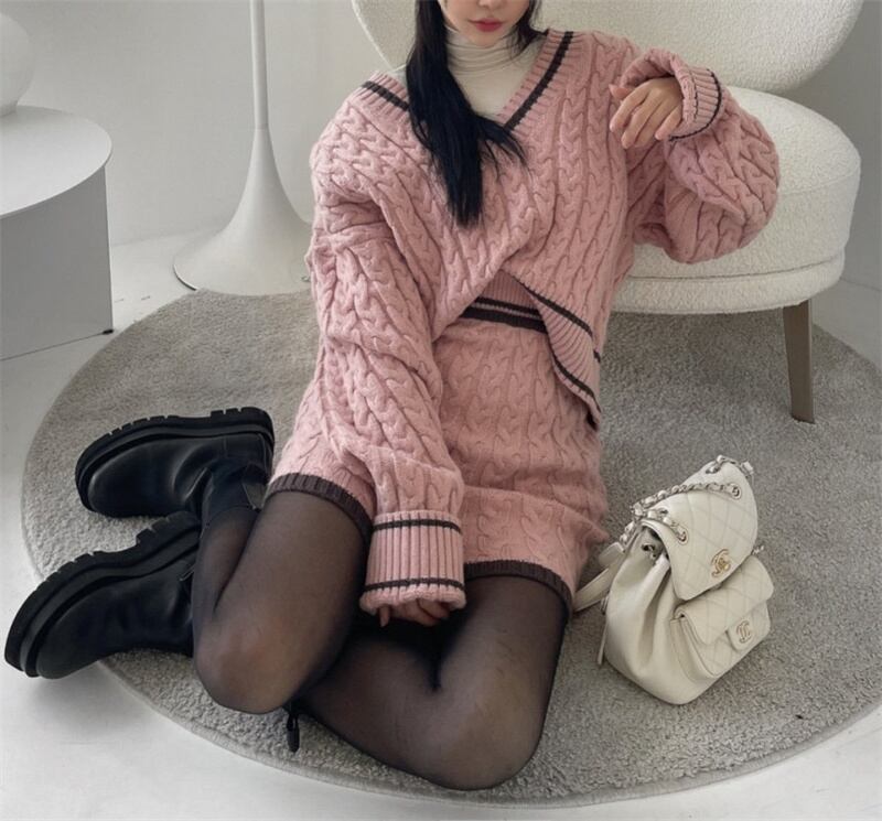 秋冬INS 新作 カジュアル 気質 韓国系 ニット セーター+スカート セットアップ