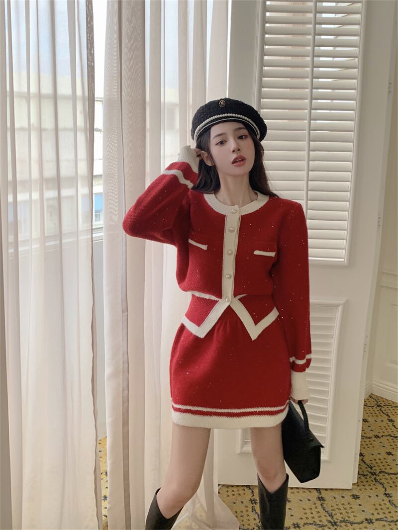 2022冬INS★ファッション レトロ おしゃれ エレガント ニット/スカート カジュアルセットアップ