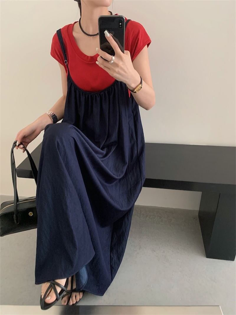 今季マストバイ INS 新作 おしゃれ カジュアル系 tシャツ+デニムワンピース 2点セットアップ