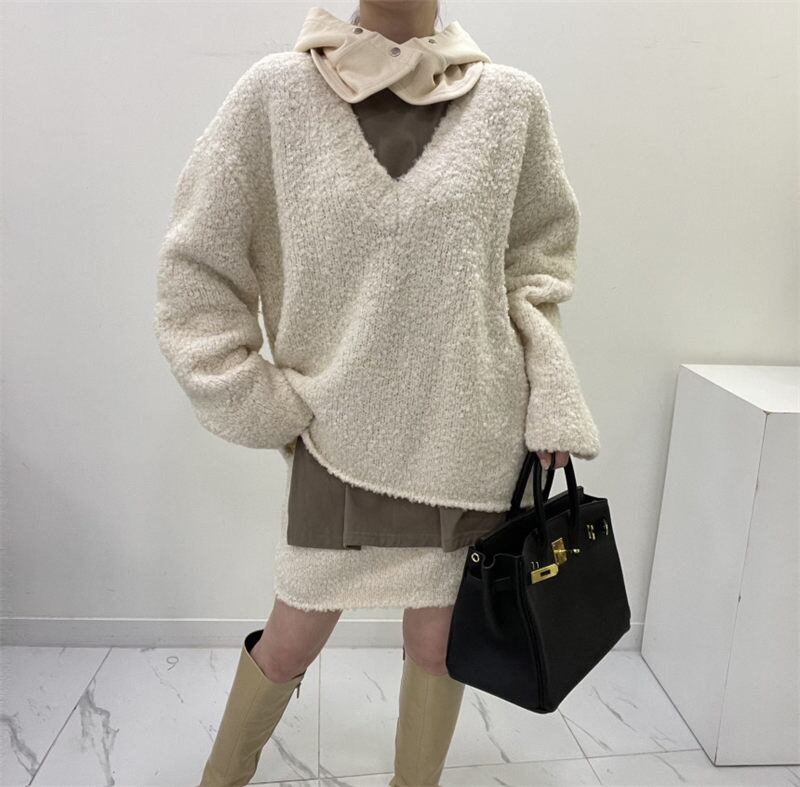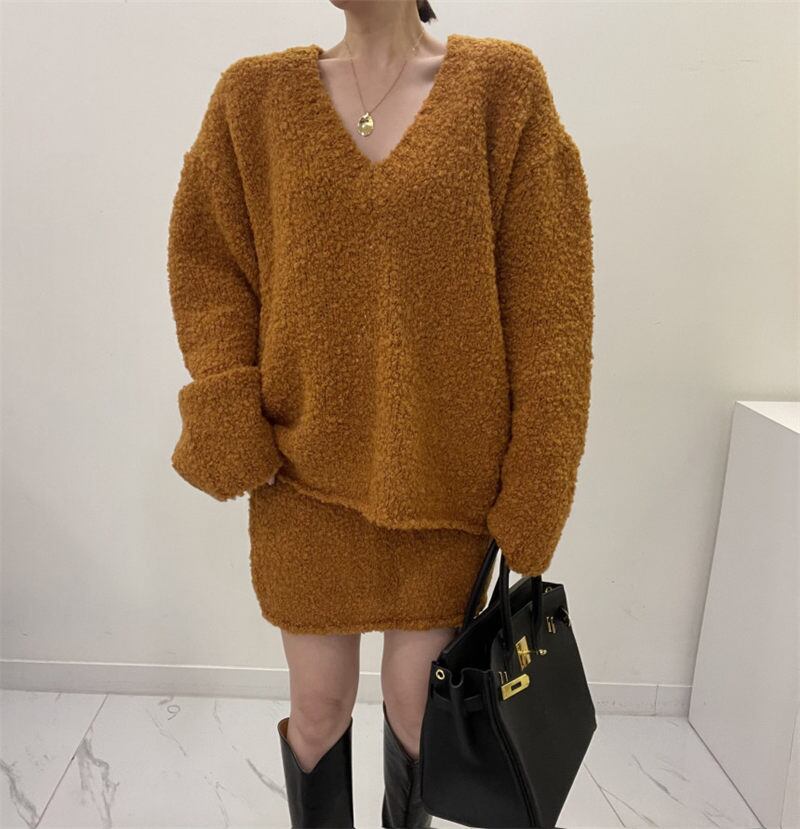 2023年秋INS 新作 気質 若く見え 韓国風 chic Vネック ニット セットアップ