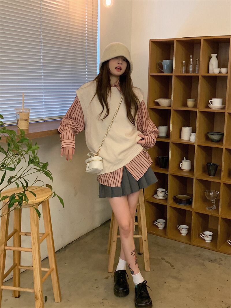 秋冬INS 新作 気質 カジュアル 韓国ファッション エレガント ベスト/シャツ セットアップ