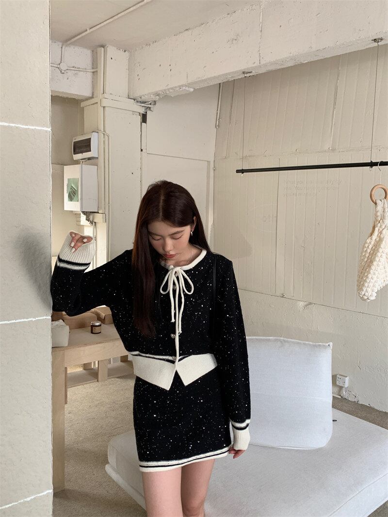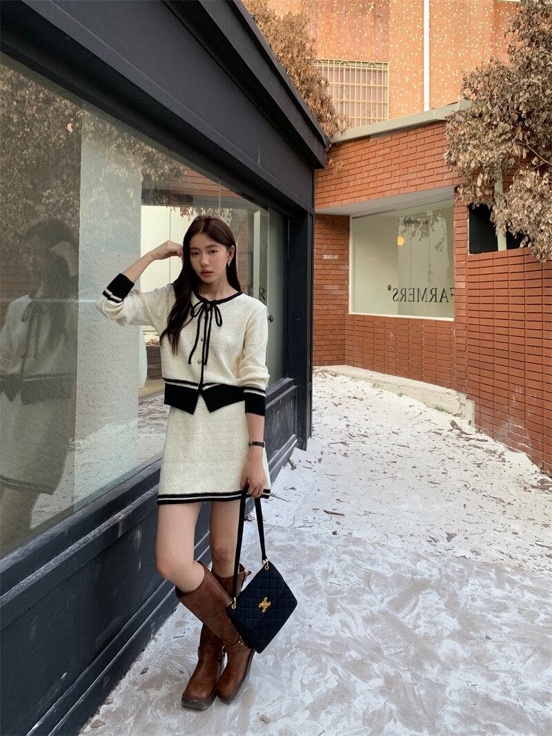 2023年冬新作 レトロ レイジー風 合わせやすい 長袖 ニット生地 セットアップ
