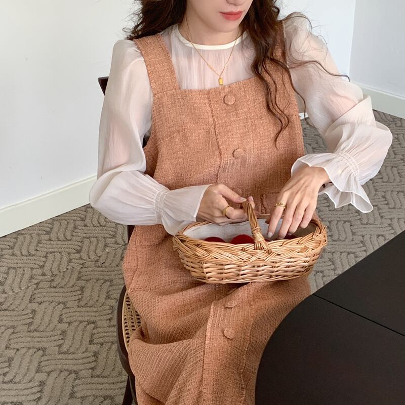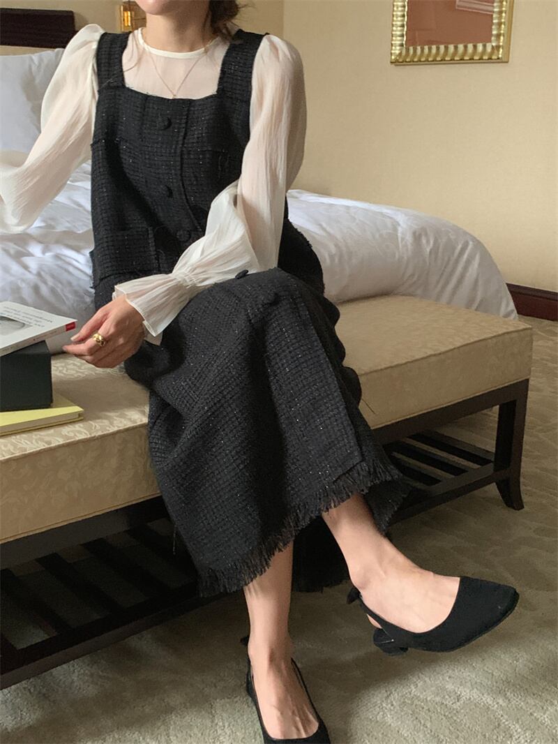 秋INS 新作 品さたっぷり 長袖 シャツ+ タッセル キャミソールワンピース 2点セットアップ