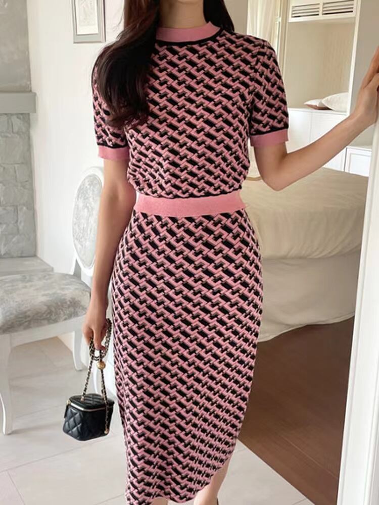 2024年INS 夏秋新作 気質 韓国系 カジュアル系 おしゃれ ニット 2点セットアップ