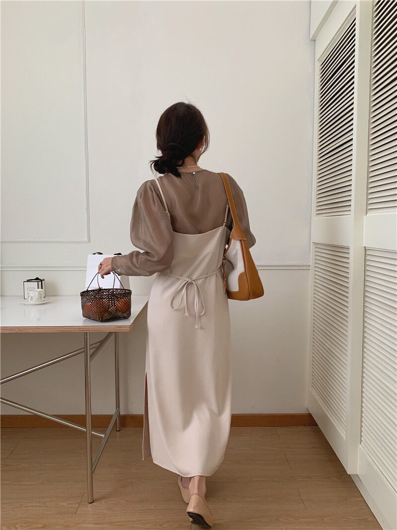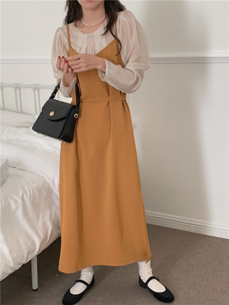 秋INS 新作 上品さたっぷり 単品注文 長袖 通勤 シャツ+無地 キャミソールワンピース 2点セットアップ