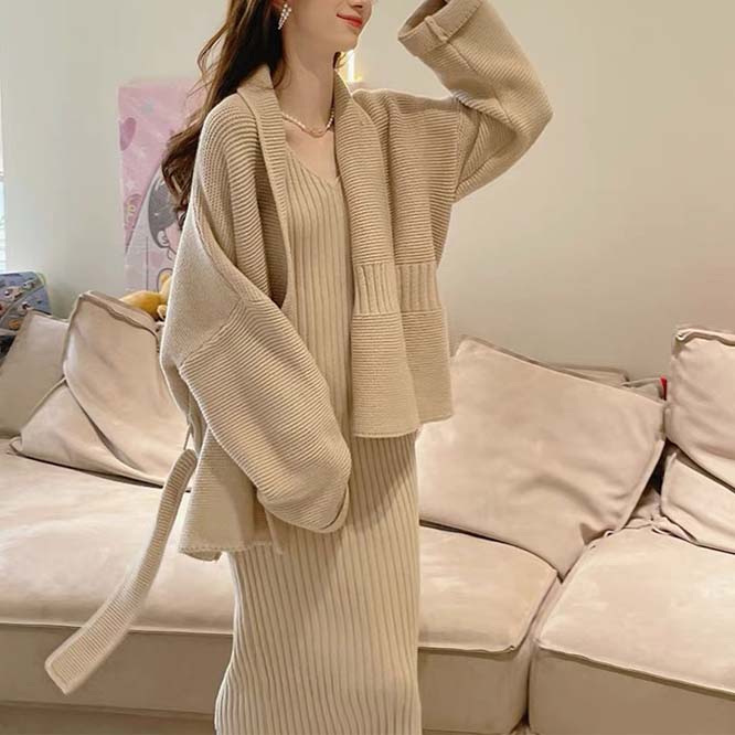 【秋新作】韓国風レディース服 おしゃれ 長袖 セットアップ 2点 ワンピース コート