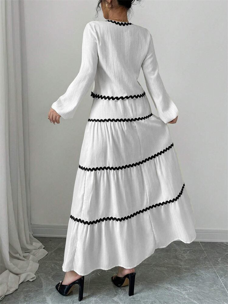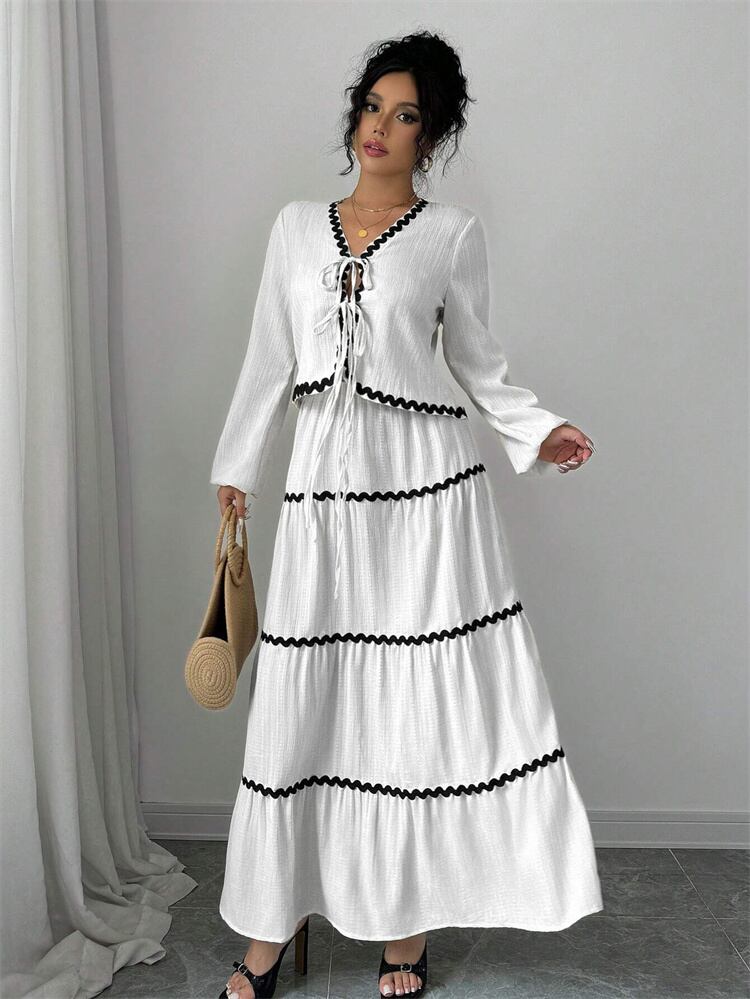 ビーチ用 タイアップデザインインブラウスとプリントミディスカートのセットアップ