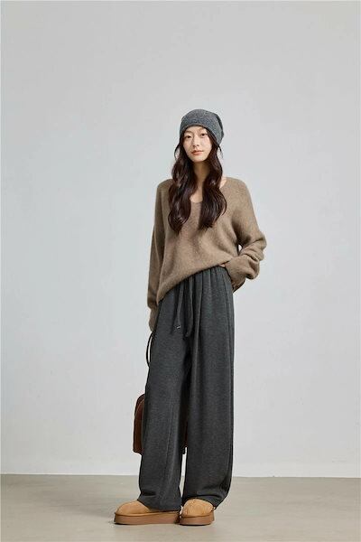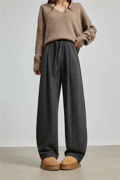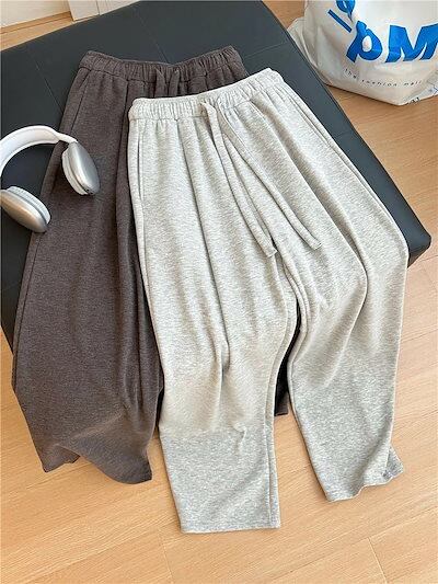 スウェット パンツ カーブパンツ レディース ボトムス ロングパンツ きれいめ ゆったり シルエット イージーパンツ ストレートパンツ ウエストゴム ひも調節 着痩せ 中厚手 無地 柔らかい S/M/