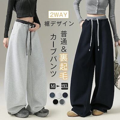 ワイド カーブパンツ レディース パンツ 裏起毛 ワイドパンツ スウェット 秋冬 ウエストゴム ゆったり 体型カバー ジャージ スウェット ボアパンツ 暖かい スウェットパンツ 裏ボア あったか 冬