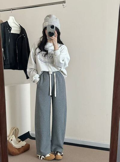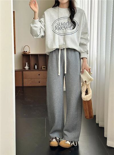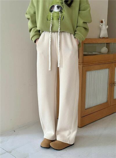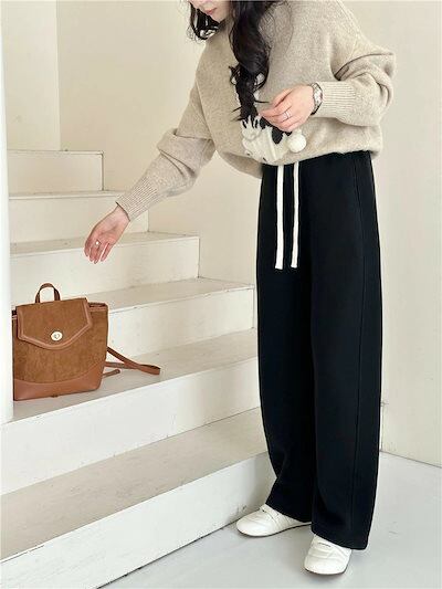 裏起毛 スウェット カーブ パンツ レディース ボトム ワイドパンツ カーブパンツ スウェットパンツ ロングパンツ ズボン ウエストゴム 体型カバー 太ももカバー ゆったり 楽ちん ポケット コットン