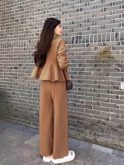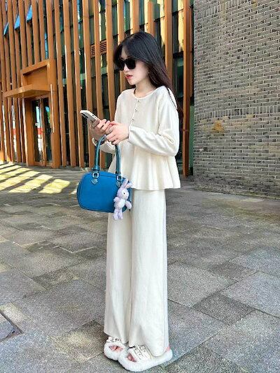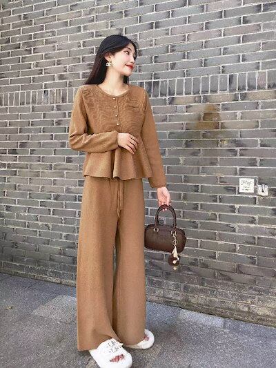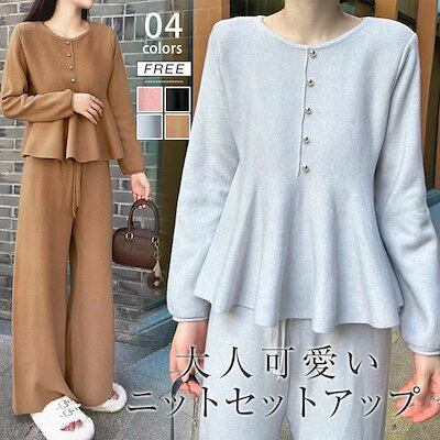 セットアップ レディース 秋 冬 ニット セットアップ セーター Aライン ニット ワイドパンツ パンツスーツ 2点セット ロング丈 ワイドパンツ トップス 長袖 春 秋 冬 ゆったり 大きいサイズ