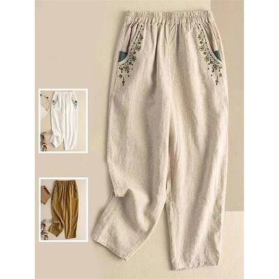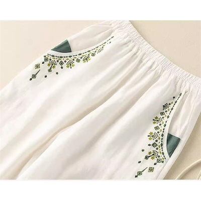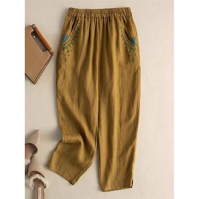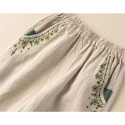 レディース 綿パンツ サルエル テーパード 刺繍 ゆったり 大きいサイズ リラックス 大人っぽい
