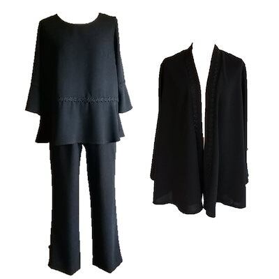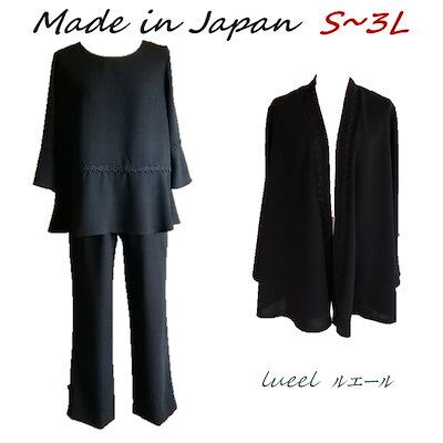 lueelS-3L個別にサイズ選べる 3点セット 喪服 礼服 ゆったり体型カバー パンツスーツ トッパー 137900