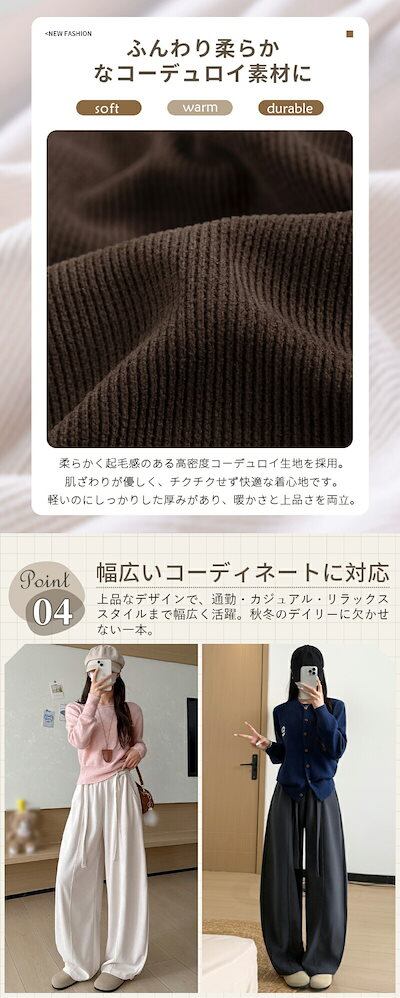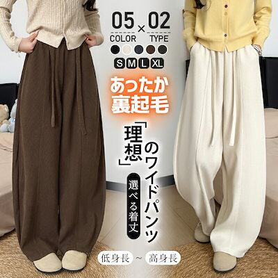 パンツ コーデュロイ カーブパンツ レディース ノーマル 裏起毛 2タイプ 選べる ワイドパンツ 美脚 体型カバー あったか ボトムス ウエストゴム 低身長 3丈選べる 秋冬 ゆったり 高身長対応