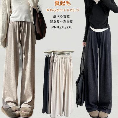 パンツ 秋冬 ワイドパンツ 裏起毛 パンツ ふんわり あったか イージーワイドパンツ レディース 裏起毛ワイドパンツ ウエストゴム ボトムス ワイド ゆったり 大きいサイズ 低身長 高身長