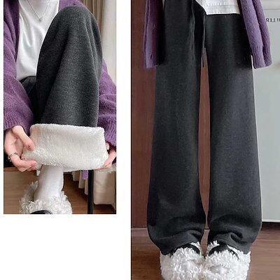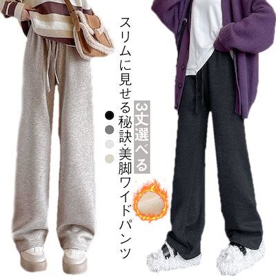 スリムに見せる秘訣 脚長効果 ふわふわ 裏起毛 ワイドパンツ レディース 冬 防寒 あったか ロングパンツ ウエストゴム 紐付け ゆったり 着痩せ ハイウエスト ズボン 無地 おしゃれ 着回