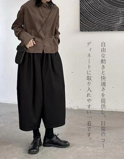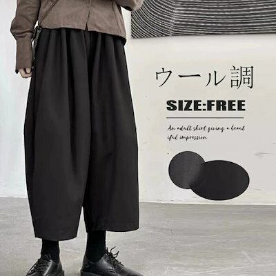 ワイドパンツ レディース 秋冬 ウール調 パンツ 九分丈 コクーンパンツ 大きいサイズ ゆったり 体型カバー バルーン ガウチョパンツ フェイクウール サルエルパンツ サーカスパンツ バルーンパンツ