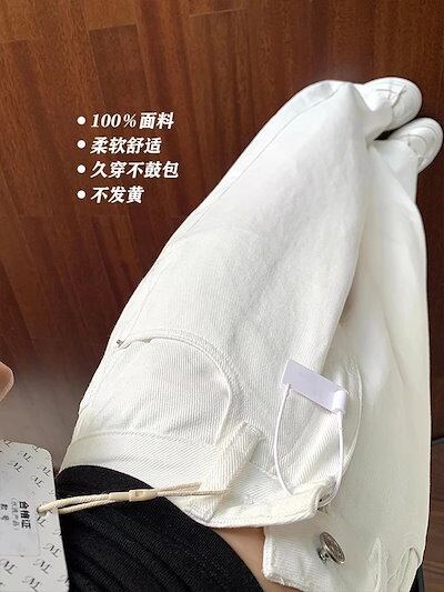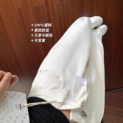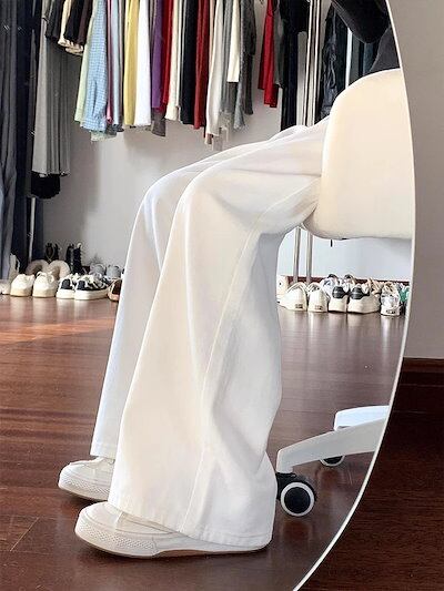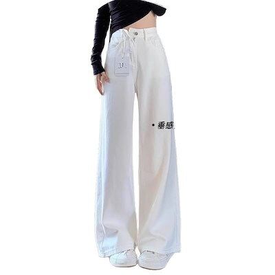 韓国風 ホワイト ワイドレッグ デニム レディース 春 夏 新作 着回し 低身長 ゆったり カジュアル パンツ