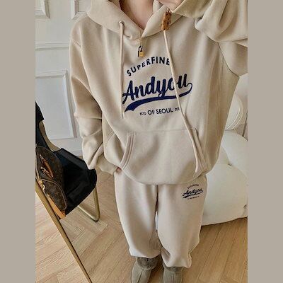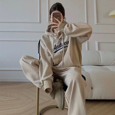急速出荷 新作韓国ファッションゆったりカジュアル運動スウェットスウェットパンツセットレディースおしゃれオールマッチパーカー厚手暖かい気質二点セット