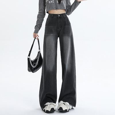 デニムかっこいいスラックスパンツ25の新作アメリカン ハイウエスト デニムパンツ おしゃれ パンツ レディース ワイドレッグ 見えやせ ハイウエストでゆったり 垂れ感