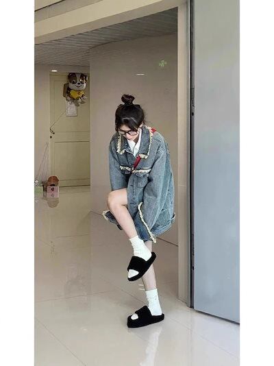 2025春新作 デニムジャケット レディース 古いフリンジコートを作る女春レトロでゆったりカジュアルなワークジャケット 春アウター 韓国ファッション