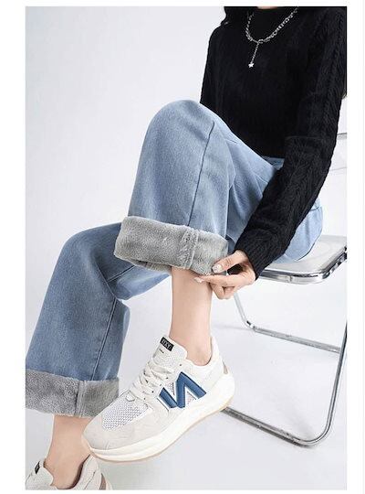 裏シャギー デニムパンツ ジーパン 防寒ズボン 厚手 レディース 裏起毛 ジーンズ ワイドパンツ ゆったり ワイド ストレー